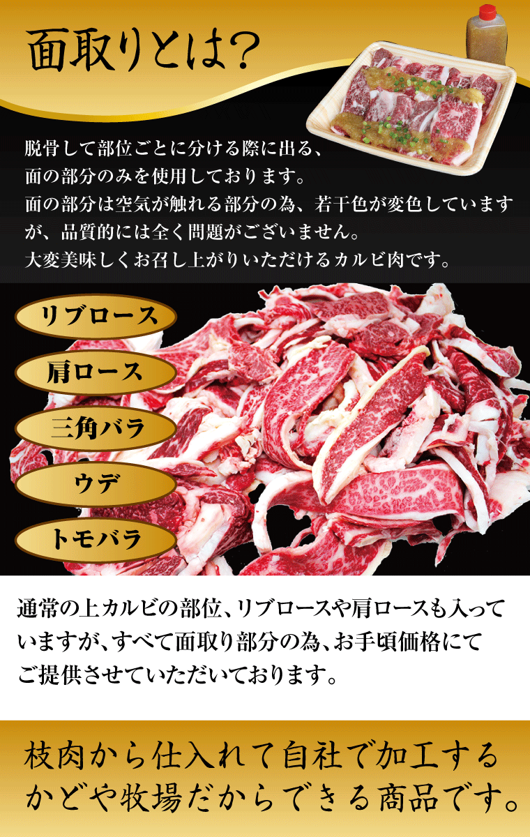 楽天市場 国産牛面取りカルビ焼肉用400g バーベキュー q かどや牧場 かどや牧場